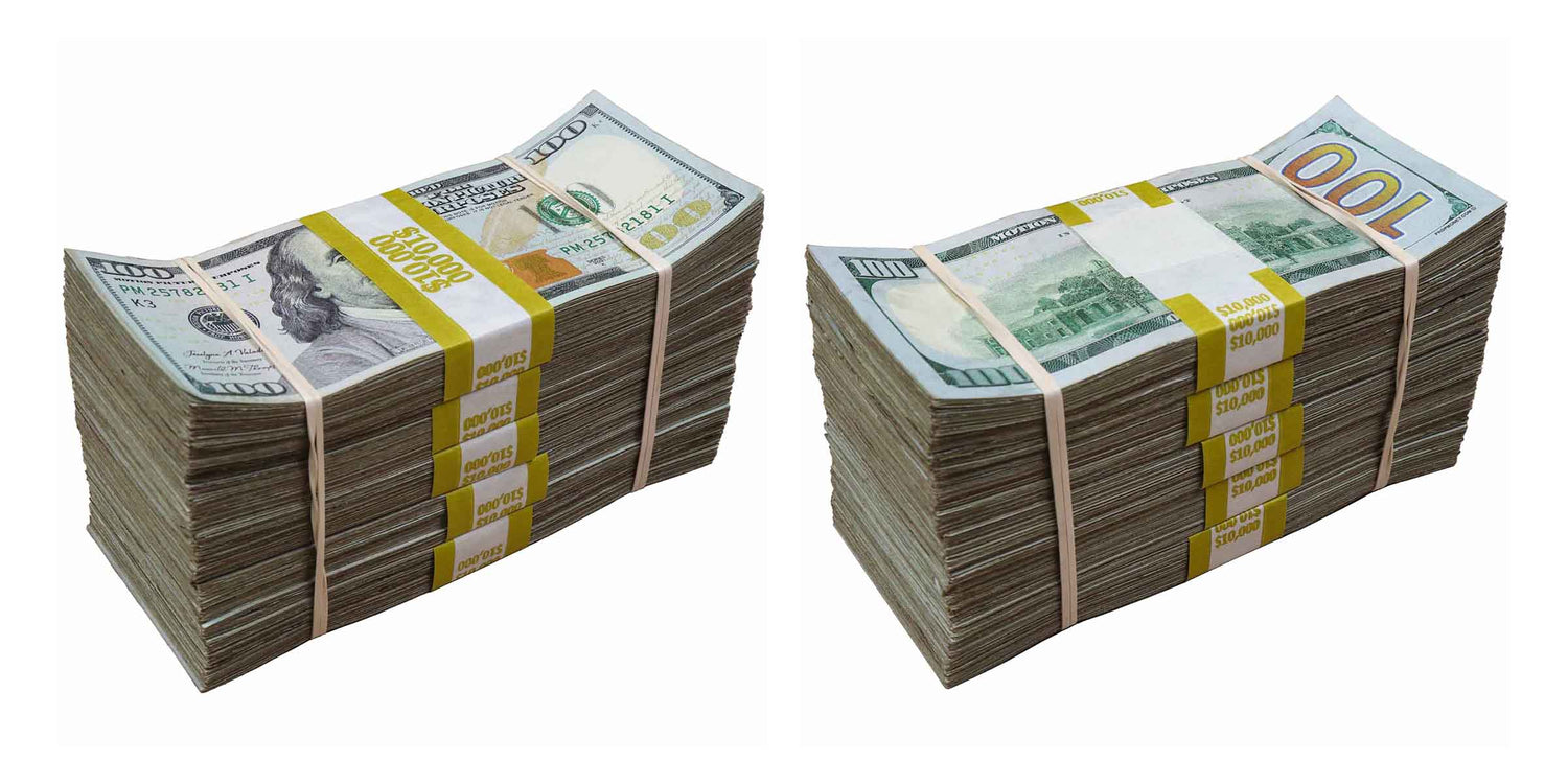 Blank Filler refers to prop money where only the top bill and bottom bill in a stack is fully printed, while the rest of the bills are blank or partially printed. These stacks are designed to create the appearance of a full bundle of money when viewed from the top or sides, making them ideal for background scenes or wide shots where close-up detail isn’t necessary. Blank filler bills are cost-effective and perfect for creating realistic-looking stacks without the need for full printing on every bill.